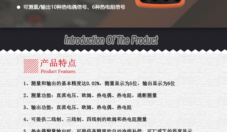 具有高精度測量/輸出熱電偶或熱電阻信號,可滿足現場高精度,高可靠性的溫度設備的調試和校準,并在石油化工、生物制藥、工業(yè)自動化、大專院校和科研機構等領域的得到了廣泛的應用。