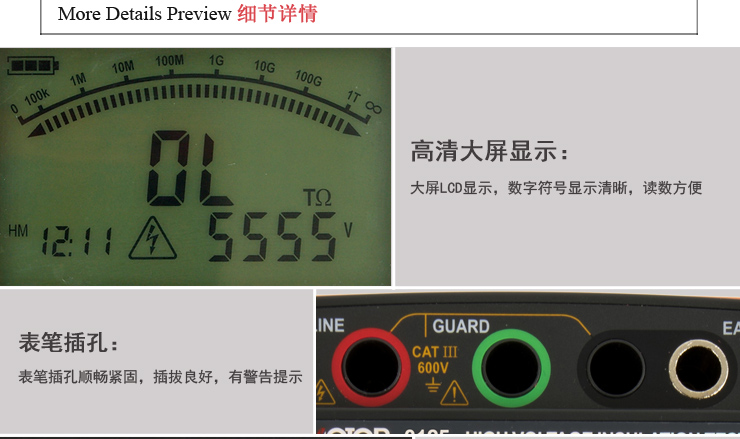 VICTOR 3125高壓絕緣電阻測試儀適用于現(xiàn)場電力設備以及供電線路的測量和檢修。