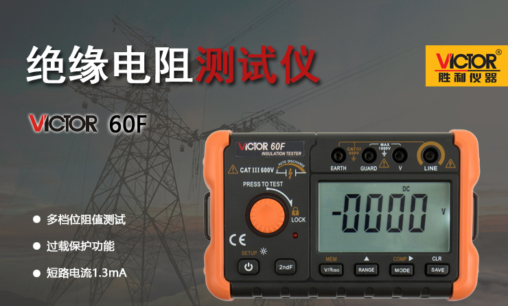VICTOR 60F 絕緣電阻測試儀是一臺智能微型絕緣測試儀器,可以完成絕緣電阻、電壓等參數(shù)測量,性能好,操作簡便。