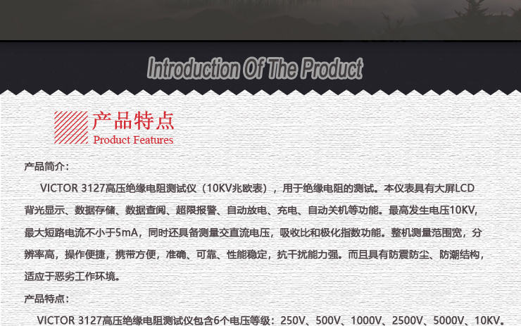 產(chǎn)品名稱:VICTOR 3127 高壓絕緣電阻測試儀(10KV兆歐表)