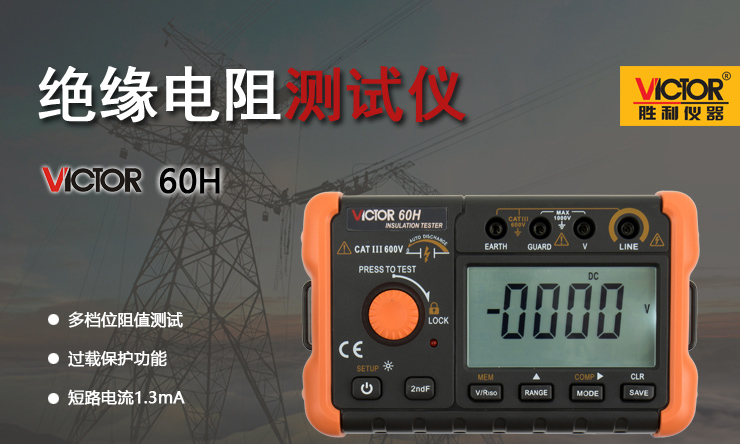 VICTOR 60H 絕緣電阻測試儀是一臺智能微型絕緣測試儀器,可以完成絕緣電阻、電壓等參數(shù)測量,性能穩(wěn)定,操作簡便。
