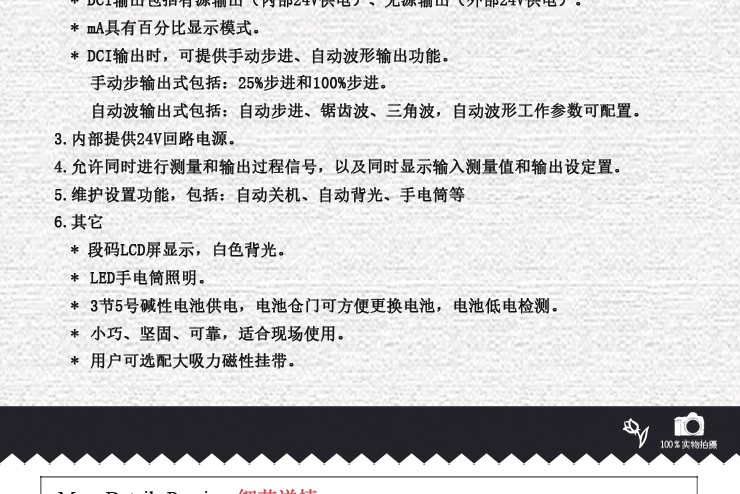 電壓電流校驗(yàn)儀VICTOR 06是針對現(xiàn)場回路調(diào)試設(shè)計的一款便攜式設(shè)備。它可提供24V回路供電,并測量回路電流,便于對現(xiàn)場變送器的調(diào)試;有源/無源的電流輸出功能,便于PLC、DCS等系統(tǒng)的調(diào)試。電壓電流校驗(yàn)儀VICTOR 06 在石油化工、生物制藥、工業(yè)自動化、大專院校和科研機(jī)構(gòu)等領(lǐng)域的得到了廣泛的應(yīng)用。