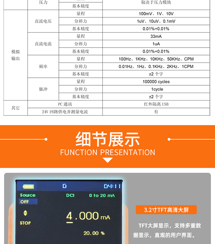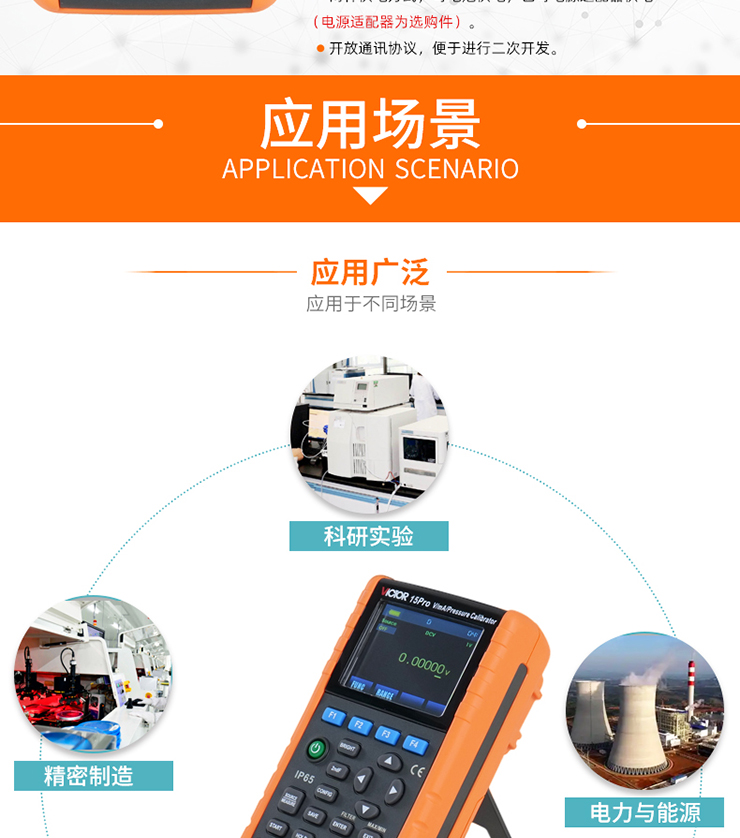 VICTOR 15Pro VmA壓力校驗儀是一款0.02%精度的高性能過程校驗儀,具有模擬輸出直流電壓、直流電流、模擬變送器、頻率、脈沖個數(shù)等功能,同時具備測量直流電壓、直流電流、頻率、通斷測試以及壓力測量等功能;該儀表開放通訊協(xié)議,便于二次開發(fā)。