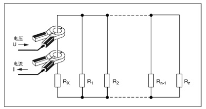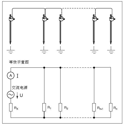 如果R1…Rn電阻的并聯(lián)連接遠遠小于所測接地電阻Rx: